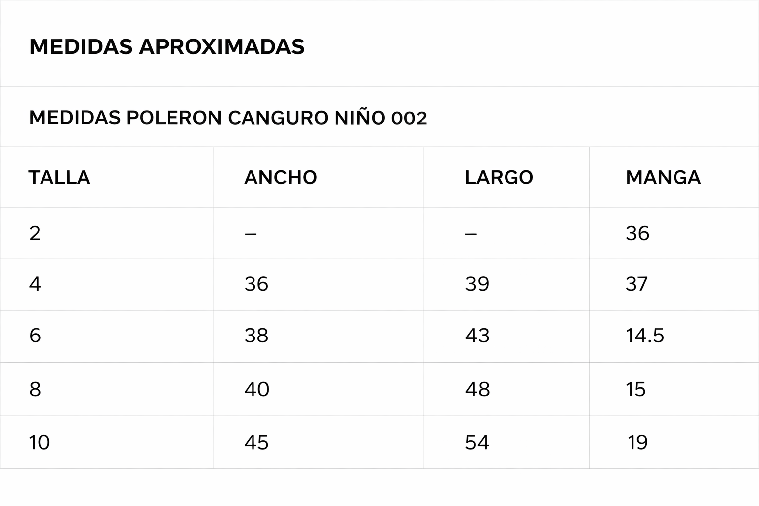 Polerón canguro infantil sin cierre, cómodo y resistente para uso diario.Ideal para abrigo y uso en prendas escolares o promocionales.