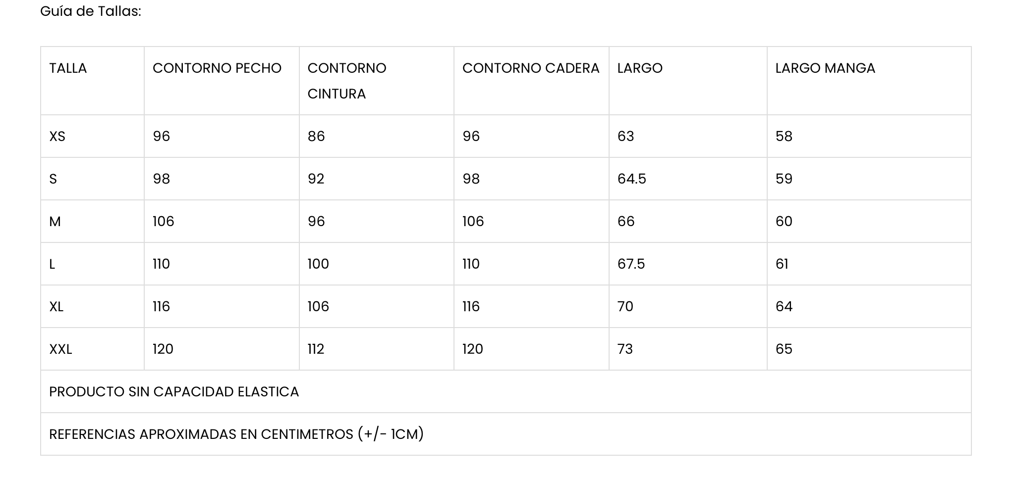 Tallas: XS a XXL