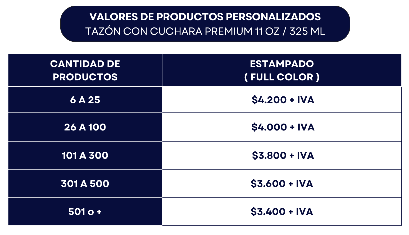 • Capacidad: 11 oz / 325 ml